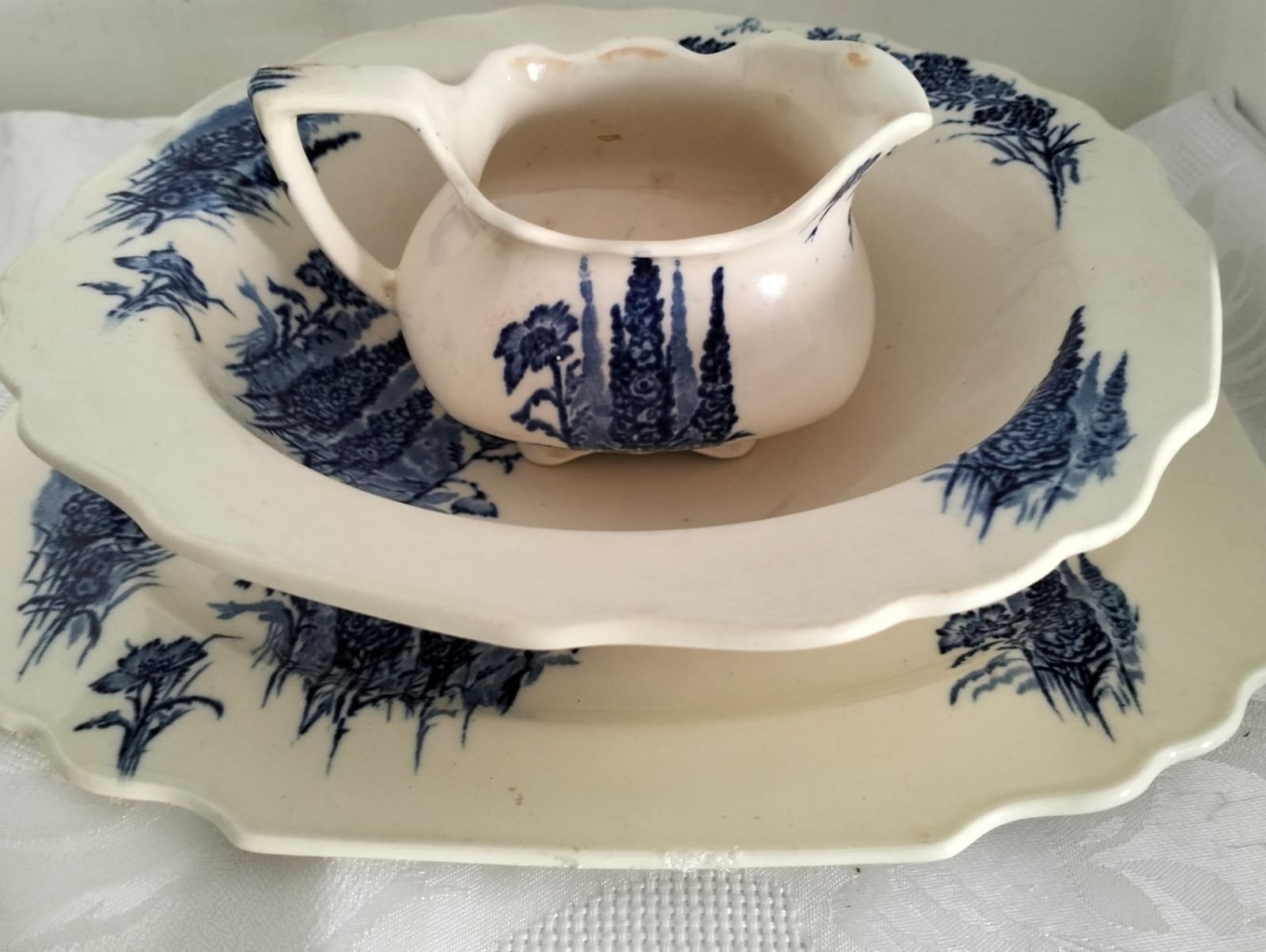Myott Son & Co Creamer, Platter and Serving Bowl. Value: R470 for Creamer. R400 for serving bowl. Pre Owned.