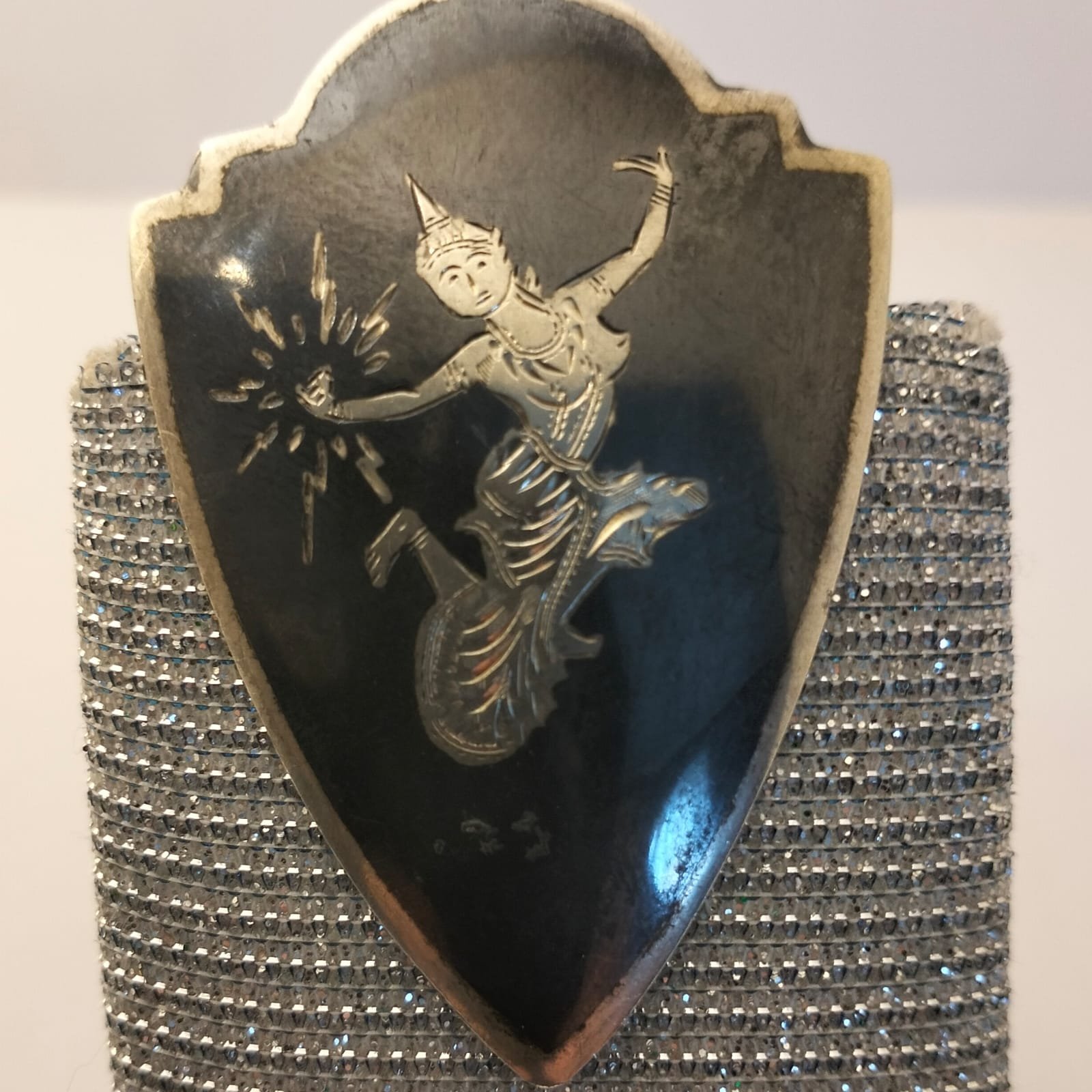 The design is often enhanced with niello work. An inlaid black enamel that creates bold contrast against the polished silver.