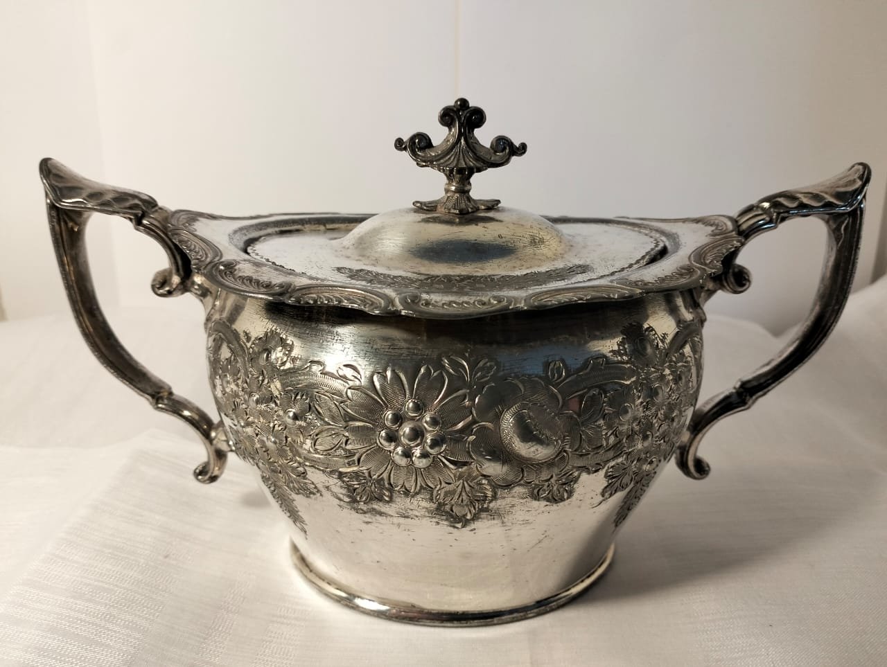 Victorian silver plated tea set. Preowned in good antique condition. Value R1 500 – R2 000
